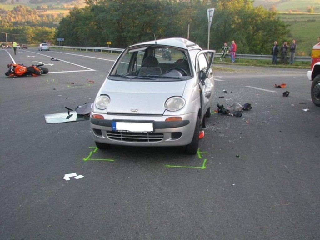 Ťažké zranenia utrpel vodič motocykla a taktiež 88-ročný vodič vozidla Daewoo.
