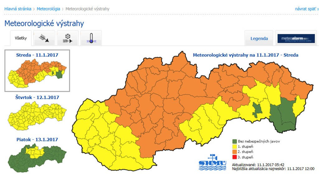 Aj na dnešný deň platia výstrahy. Druhý stupeň kvôli nízkym teplotám, najnižšia výstraha platí kvôli silnejšiemu vetru.