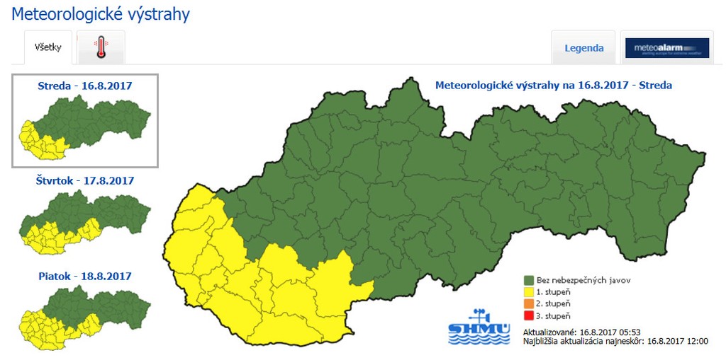 Meteorológovia vydali výstrahu 1.stupňa.