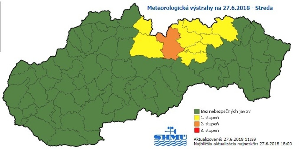 Ešte silnejší dážď a druhý stupeň výstrah platí v jedinom okrese - Poprad. Očakáva sa s úhrnom zrážok 40 - 55 mm. Píšu meteorológovia na svojej stránke.