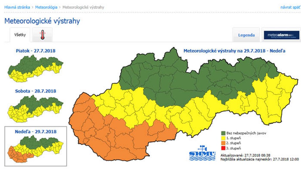Na piatok a sobotu platí výstraha najnižšieho stupňa. Meterologóvia však upozorňujú, že veľmi teplo bude najmä v nedeľu. Na posledný víkendový deň zvýšili výstrahu na 2. stupeň.