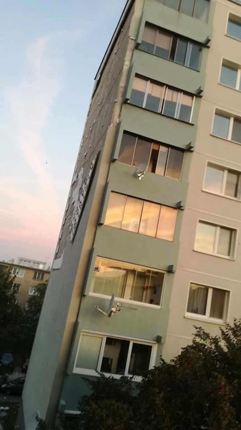 V Stupave odpadla z jedného z panelákov veľká časť zateplenia. Faktom je, že v meste na Záhorí vtedy fúkal silný vietor.