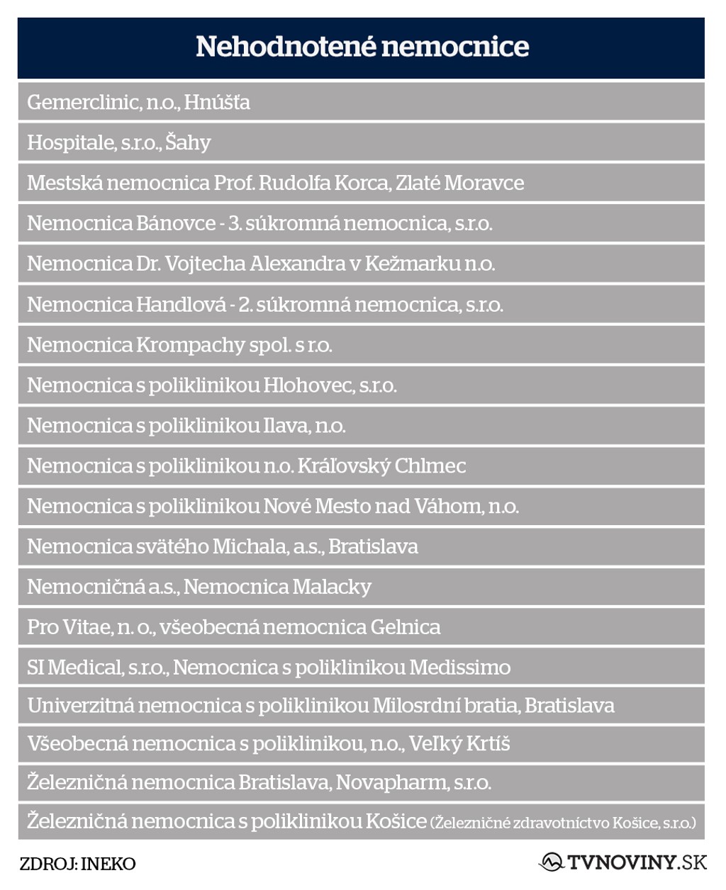 Niektoré nemocnice sa do hodnotenia ani nedostali, lebo nespĺňali kvalifikačné kritérium.