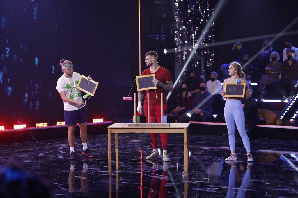 Po kvíze si finalisti Farmy 12 vyskúšali svoje reflexy. Postavili sa ku konštrukcii, na ktorej vyseli paličky, ktoré postupne padali a museli ich chytať. Tu sa najviac darilo Heňovi a najmenej Lukášovi.
