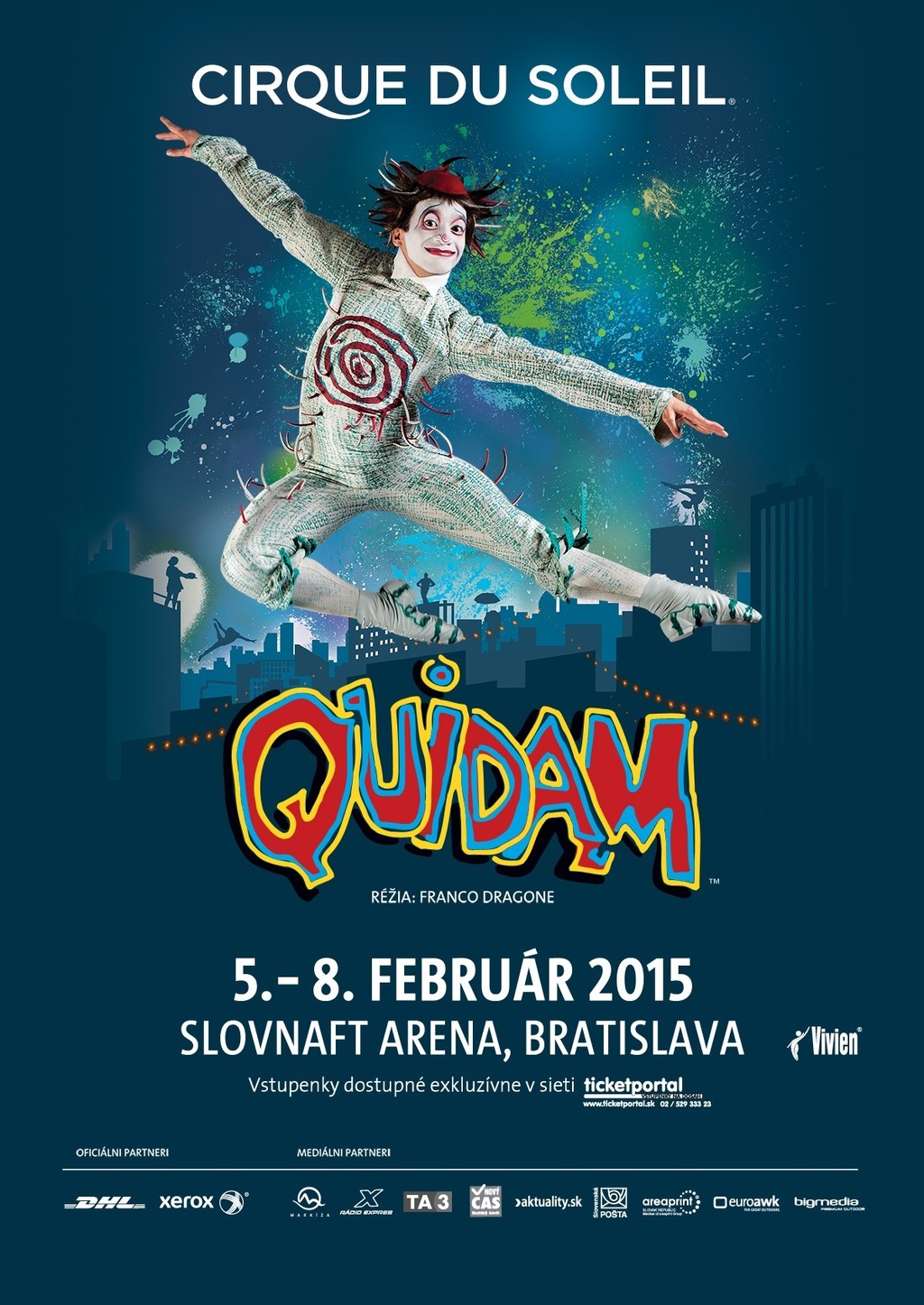 Cirque du Soleil s potešením oznamuje, že súbor Quidam sa predstaví v Bratislave od 5. do 8. februára 2015 v Slovnaft Arene v siedmich jedinečných predstaveniach.