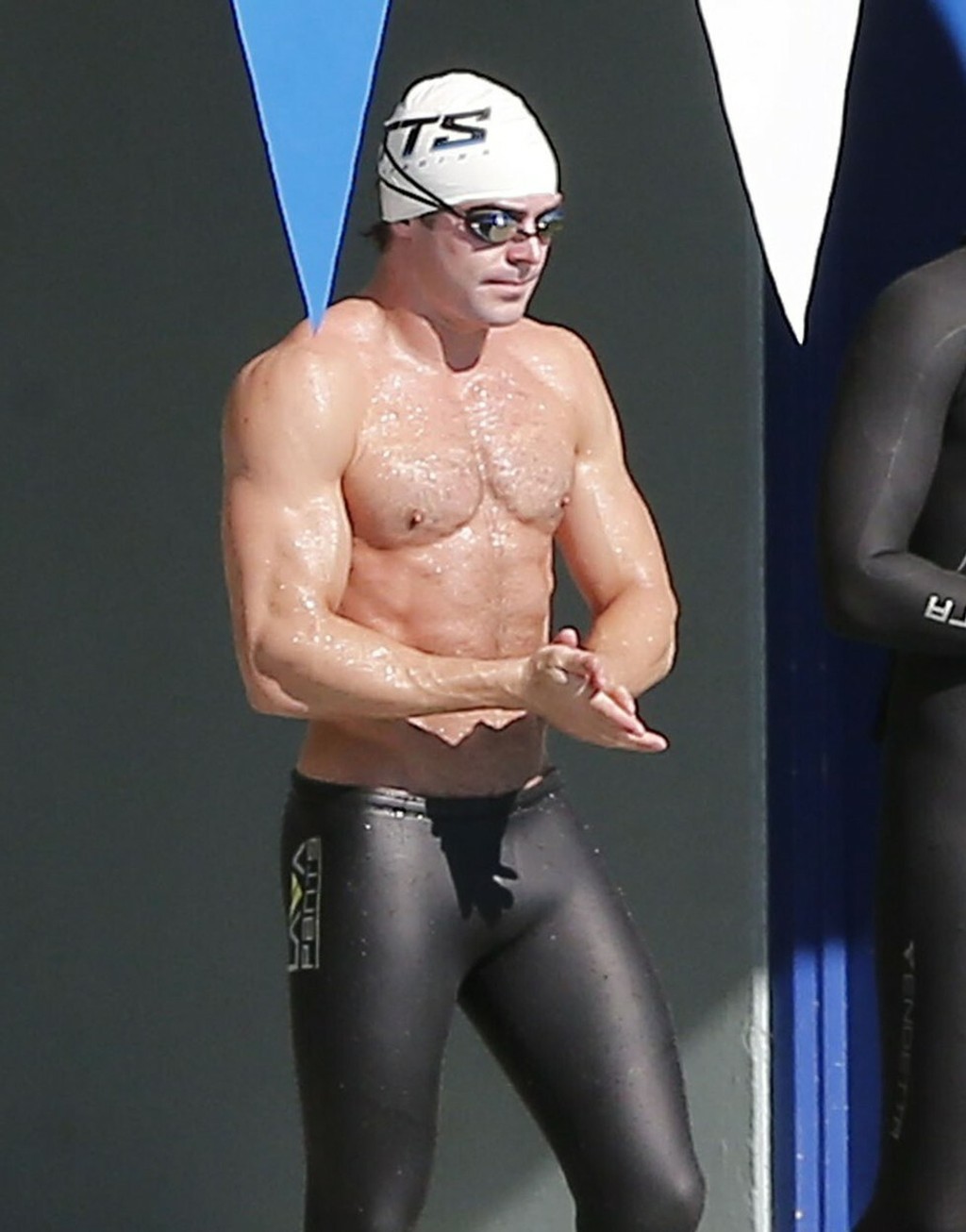 Fotografi ho zachytili, ako sa pripravuje na úlohu bývalého olympijského plavca, ktorý sa stane záchranárom.