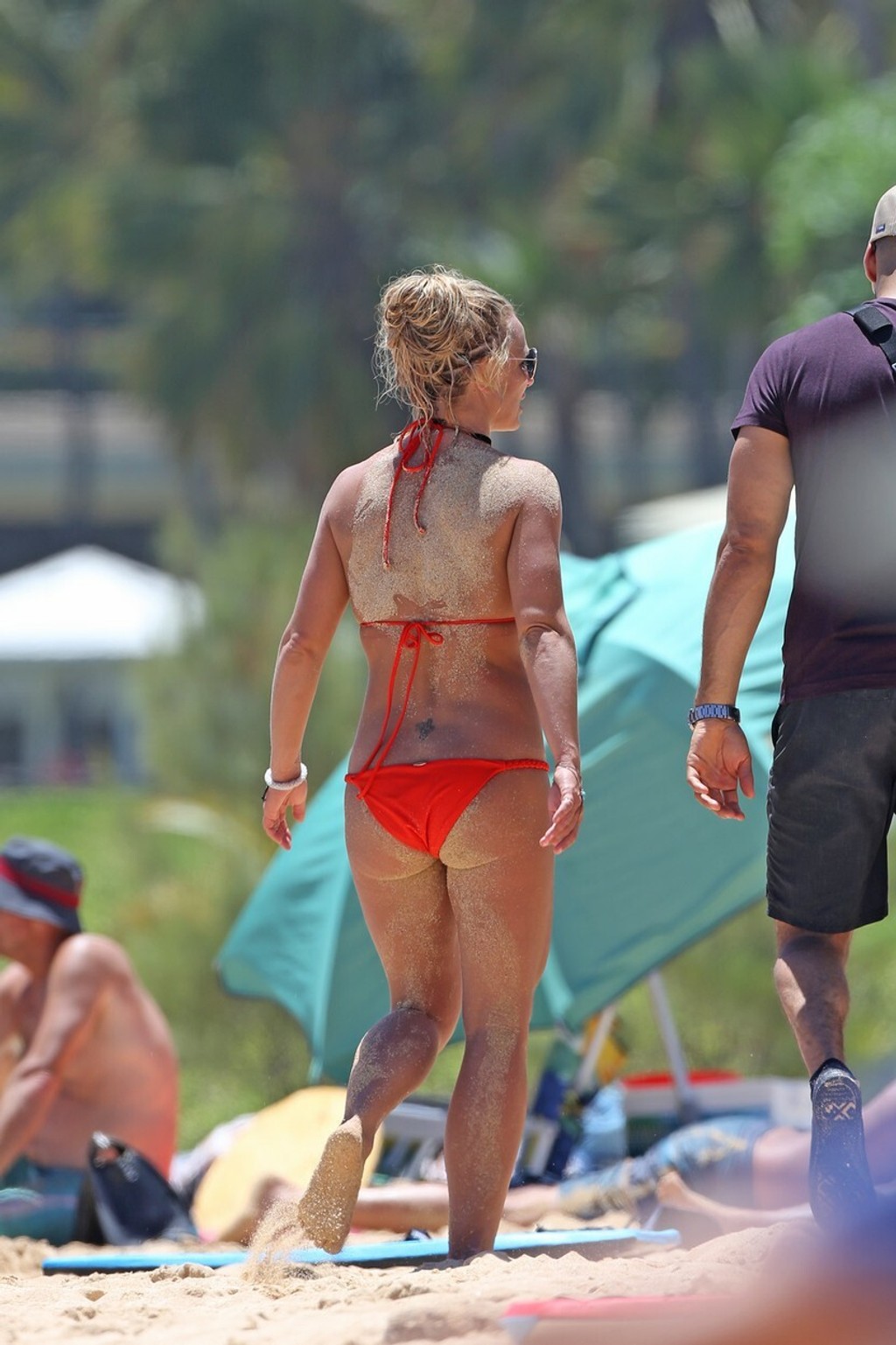 Tridsaťštyriročná speváčka Britney Spears dovolenkuje s kamarátkami a rodinou na Havaji, kde samozrejme nemohli chýbať ani bulvárni fotografi. Našťastie! Inak by sme sa nemohli pokochať jej krásnou postavou, ktorú predviedla v oranžových bikinách. Ešte viac tak vynikla jej pekne opálená pokožka.