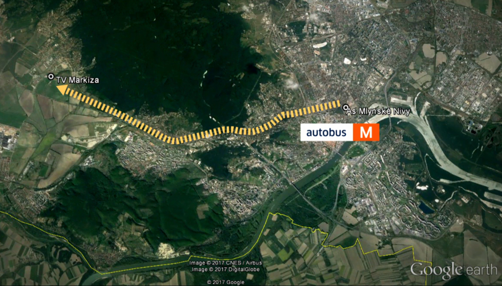Ak sa budete do Markízy presúvať z autobusovej stanice Mlynské Nivy, pripravený je pre vás autobus označený písmenom M, ktorý jazdí v intervale každých 20 minút.