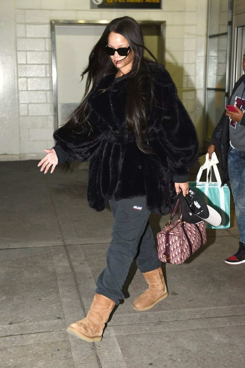 V piatok ju odfotili paparazzi na letisku JFK v New Yorku. Na sebe mala luxusný čierny kožuch od návrhárky Simone Rochy, ku ktorému zvolila tepláky a topánky značky Ugg. S mejkapom si nerobila žiadne starosti a s dlhými predĺženými vlasmi vyzerala ako Pocahontas.