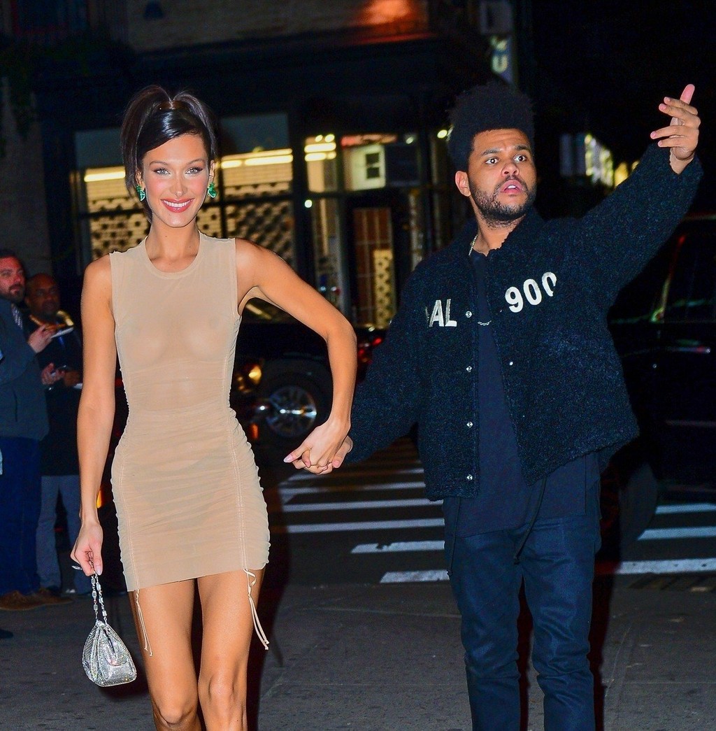 Napokon, z party nakoniec odchádzala po boku svojho priateľa, speváka The Weeknda, opäť v presvitajúcich šatách.