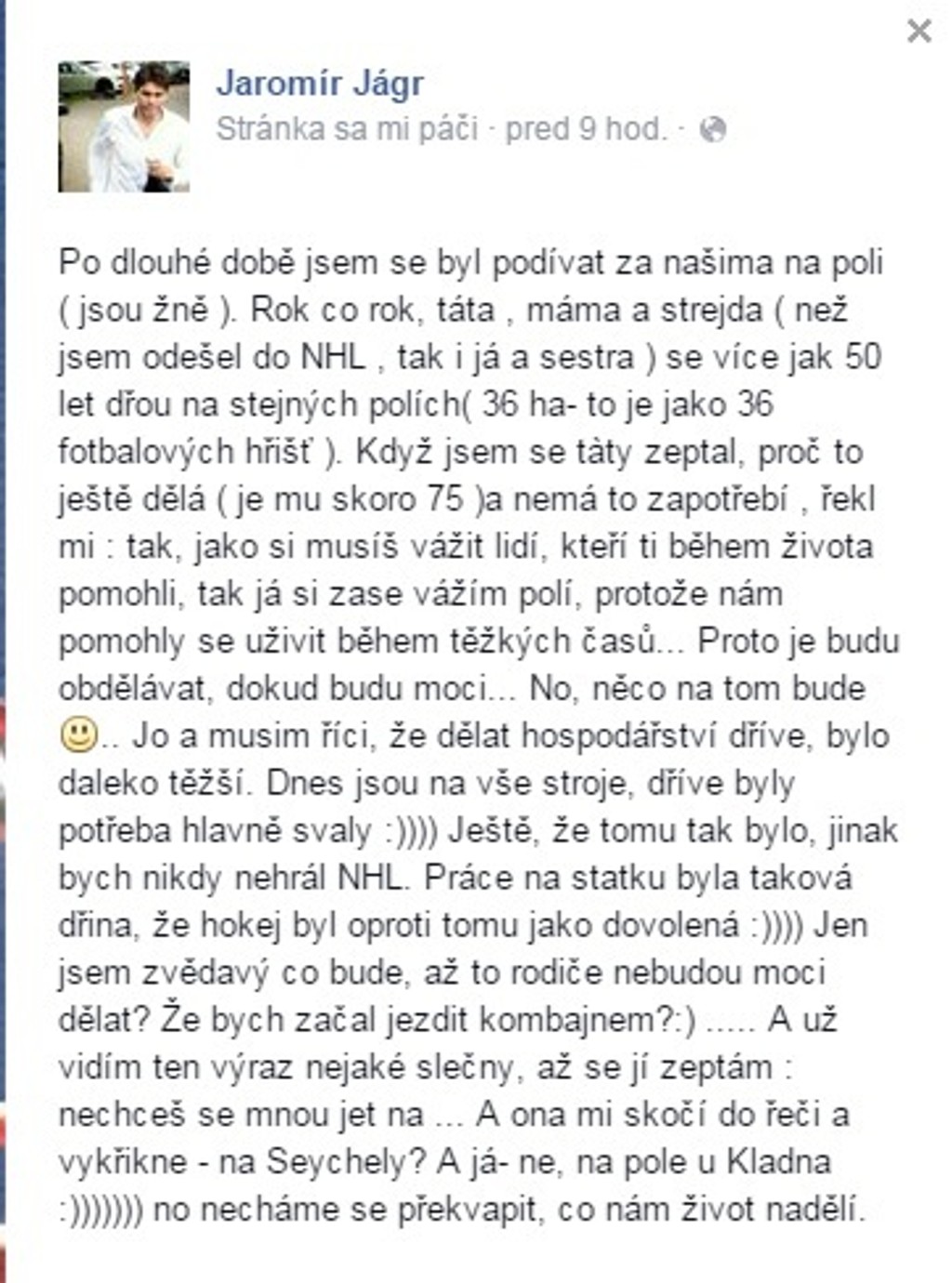 Česká hokejová legenda Jaromír Jágr sa nezdá. Včera na svojej sociálnej sieti uverejnil fotografiu s textom, ktorý dostane naozaj každého.