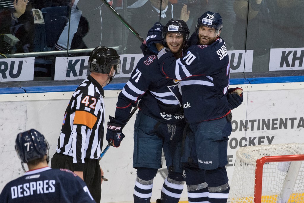 19. Mikúš (Smoleňák, Després), 25. Després (Skalický), 46. Smoleňák (Viedenský, Ebert) - 6. Azevedo (Sekáč, Markov), 25. Gluchov (Popov), 31. Sekáč (Azevedo, Markov), 43. Archipov (Musin, Popov), 44. Azevedo (Sekáč), 51. Sekáč (Zacharčuk). Rozhodovali: Jeřábek (ČR), Ravodin - Kučava, Novikov (všetci Rus.), vylúčení: 7:6, presilovky: 1:1, oslabenia: 0:0, zmeny: Slovan od 41. min. s Boldižárom, 6674 divákov.