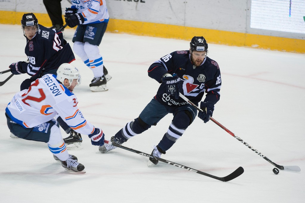 Góly: 32. Després (Štěpánek), 52. Kašpar (Řepík) - 30. Soin (Belousov, Bočarov), 37. Žuravľov (A. Strelcov), 51. Nesterov (Mastrjukov, Soin), 60. Kapustin (Novotný). Rozhodovali: Gamalej (Rus.), Odins (Lot.) - Golovľov, Černyšov (obaja Rus.), vylúčenia: 4:3 na 2 min., navyše Nesterov (Lada) 10 min. za nešport. správanie, presilovky: 1:1, oslabenia: 1:0, 6462 divákov.