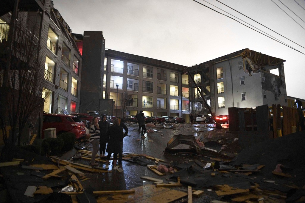 V oblasti mesta Nashville bolo zničených približne 40 budov. Jedno z tornád spôsobilo naprieč centrom mesta rozsiahle škody, zničilo vitráž v historickej budove kostola a stovky ľudí vyhnalo z ich domovov.