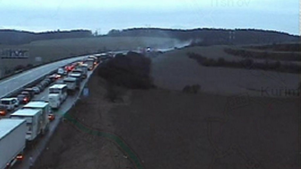 Dopravná polícia vozidlá z kolóny, ktorá následne narástla na asi štyri kilometre, odkláňa v oboch smeroch: v smere na Prahu na 178. kilometri a v smere na Brno na 168. kilometri.