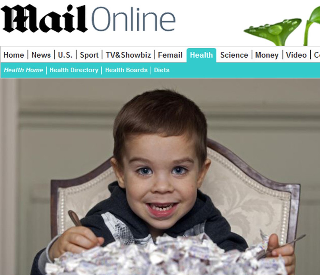 Chlapček to zatiaľ berie s úsmevom a najradšej chodí s rodičmi do reštaurácie. Kým oni si vychutnávajú dobré kura, on chrúme drvený ľad. Pre lekárov je záhadou, prečo jeho telo dokáže tolerovať sladkosti, ale normálne jedlo nie.