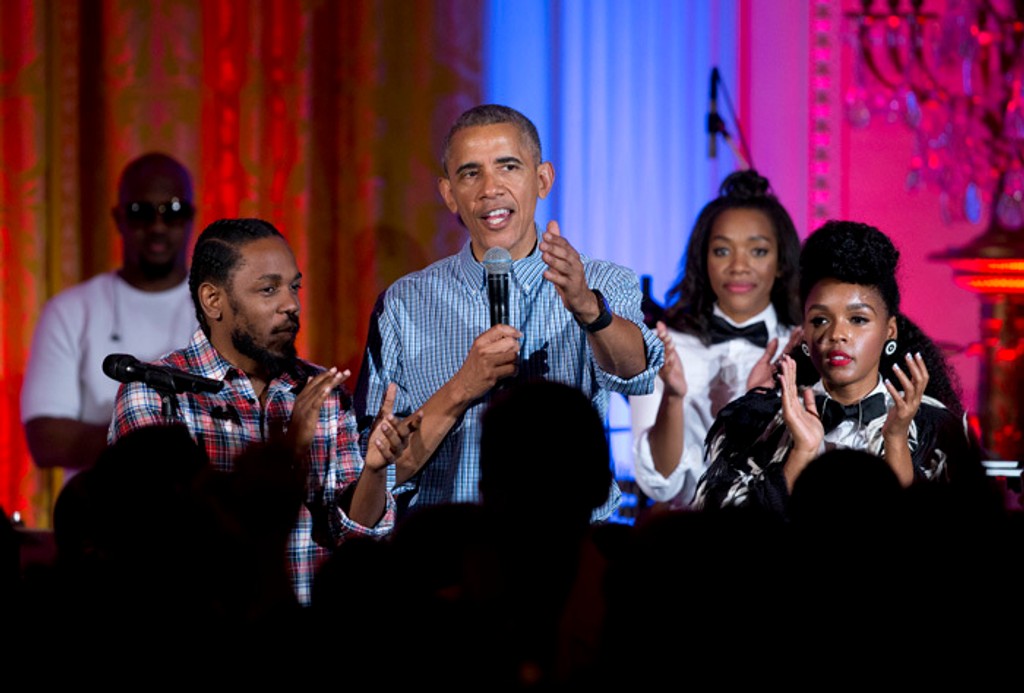 Obama svoj príhovor predniesol po asi hodinovom vystúpení rapera Kendricka Lamara a speváčky Janelle Monáe. Tá ukončil svoju časť koncertu skladbou "Let's Go Crazy" na počesť speváka Princea, ktorý v apríli nečakane zomrel.