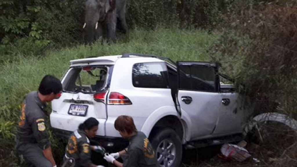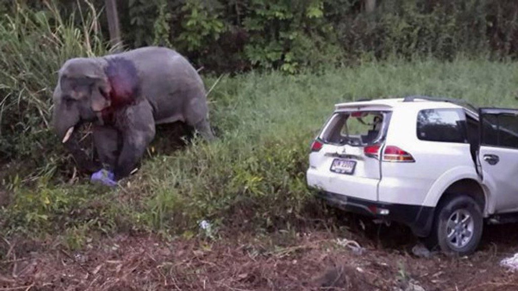 Niekoľkotonové slony autá rozmetali na šrot. Zabili pri tom šiestich ľudí a ďalší dvaja utrpeli ťažké zranenia. Jeden zo slonov tvrdý náraz s autom tiež neprežil.