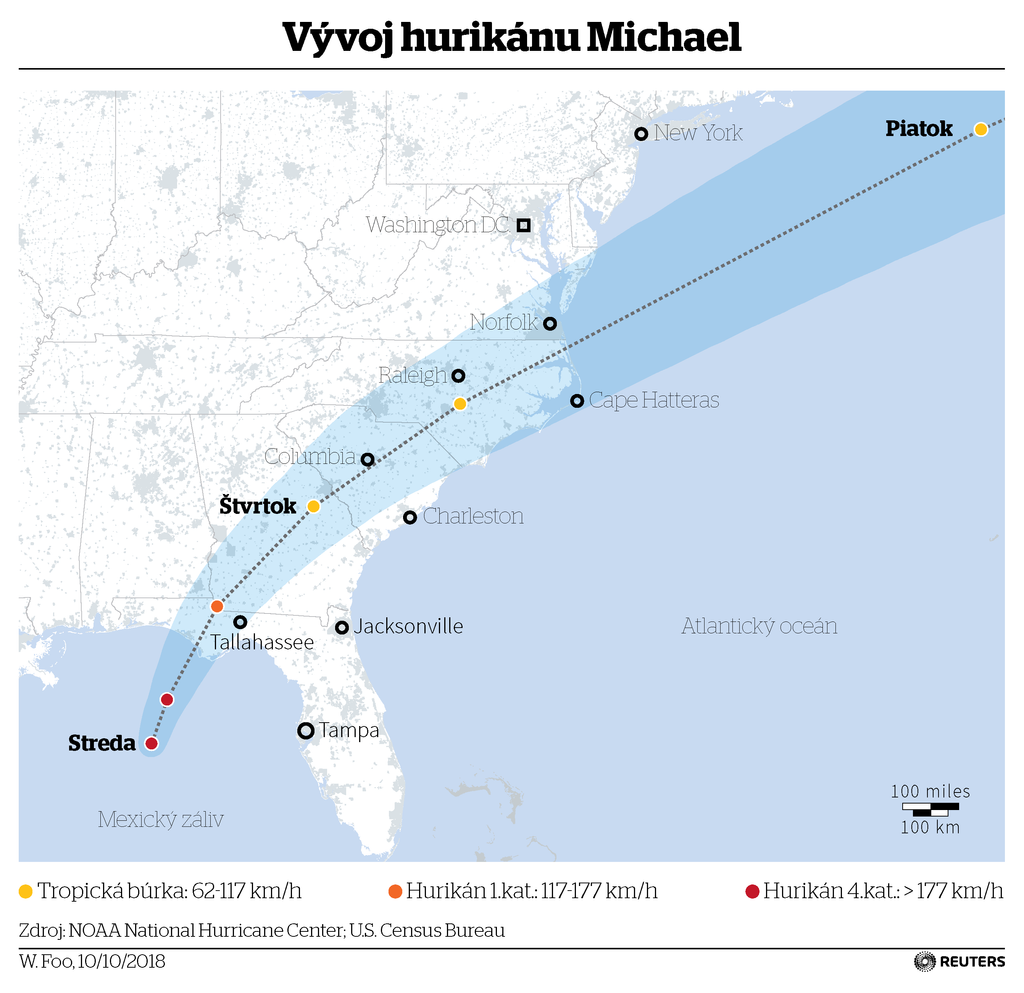 Silný hurikán Michael, ktorý v stredu zasiahol severozápadnú časť amerického štátu Florida, si vyžiadal dve obete. O život prišiel vo floridskom okrese Gadsden County muž, na ktorého spadol strom. Druhou obeťou je 11-ročné dievča, ktoré v okrese Seminole County v štáte Georgia skonalo po tom, ako sa strom zrútil na dom.
